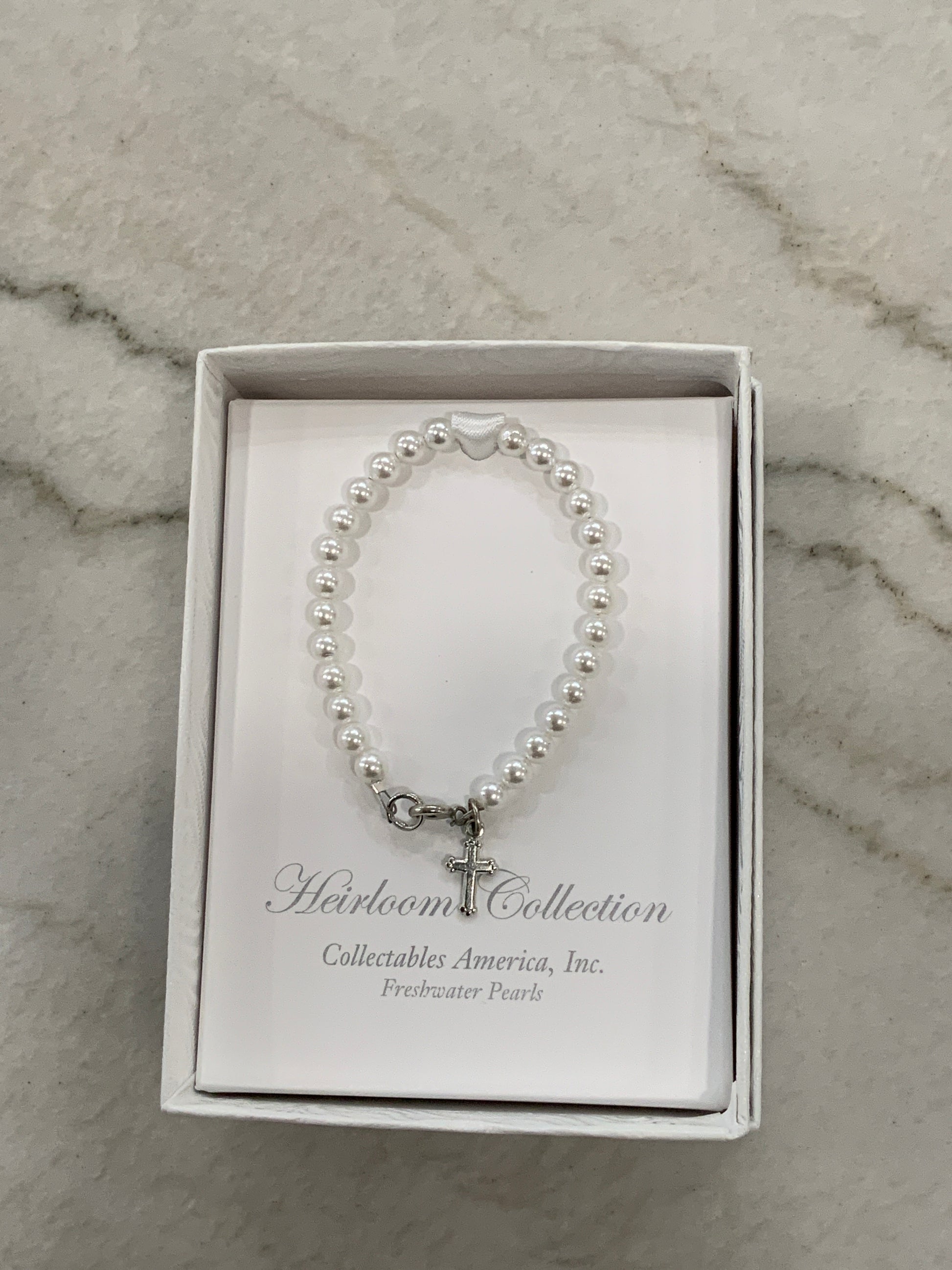 Cross Pearl Clasp Bracelet 5”