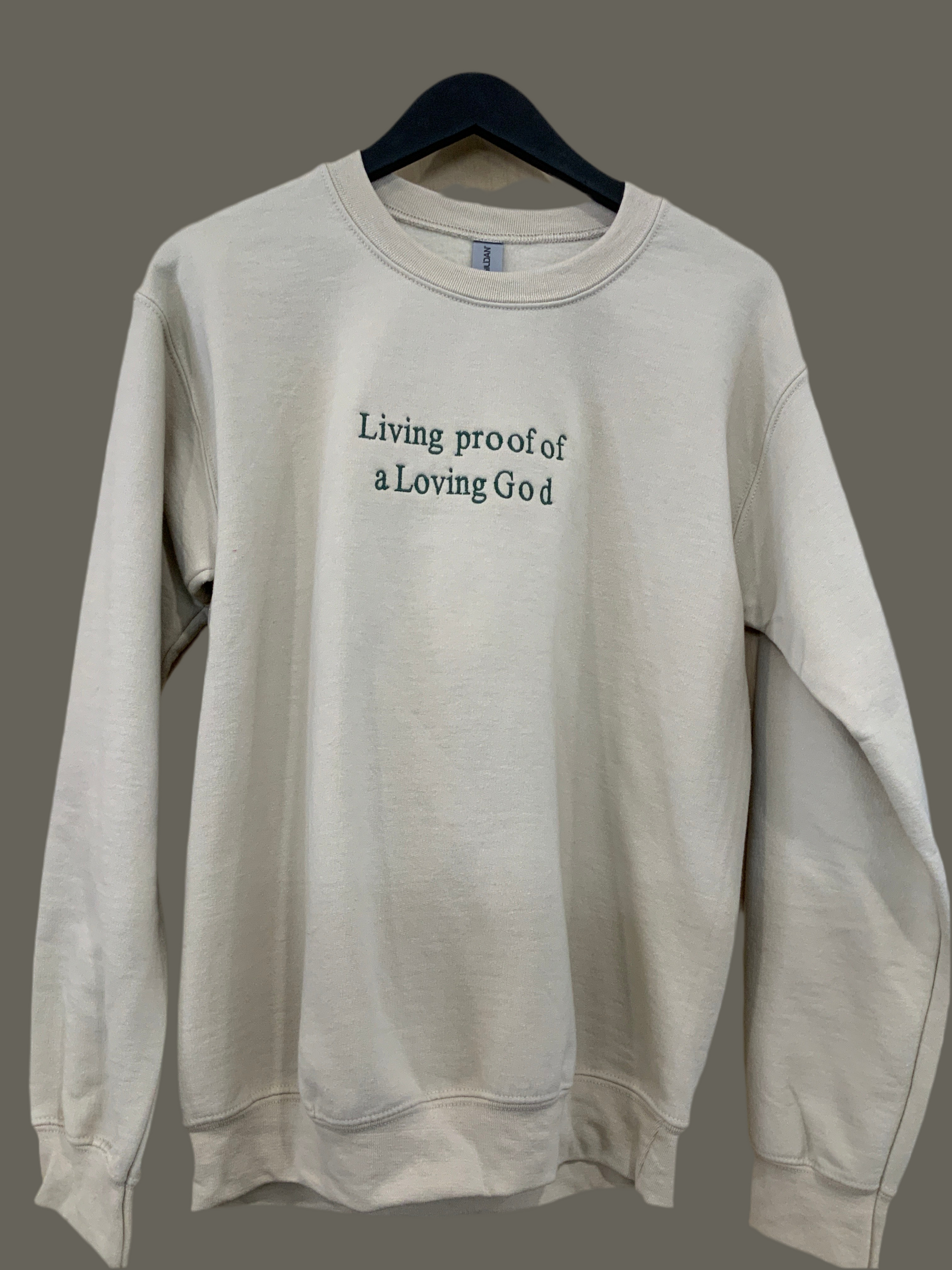 Living proof of a Loving God ✨ This sweatshirt is more than just cozy—it’s a testimony you can wear. With its classic crewneck fit, neutral tone, and powerful reminder, it’s the perfect everyday piece for sharing your faith. Soft, versatile, and uplifting, it pairs beautifully with jeans or leggings for a casual, Christ-centered look.