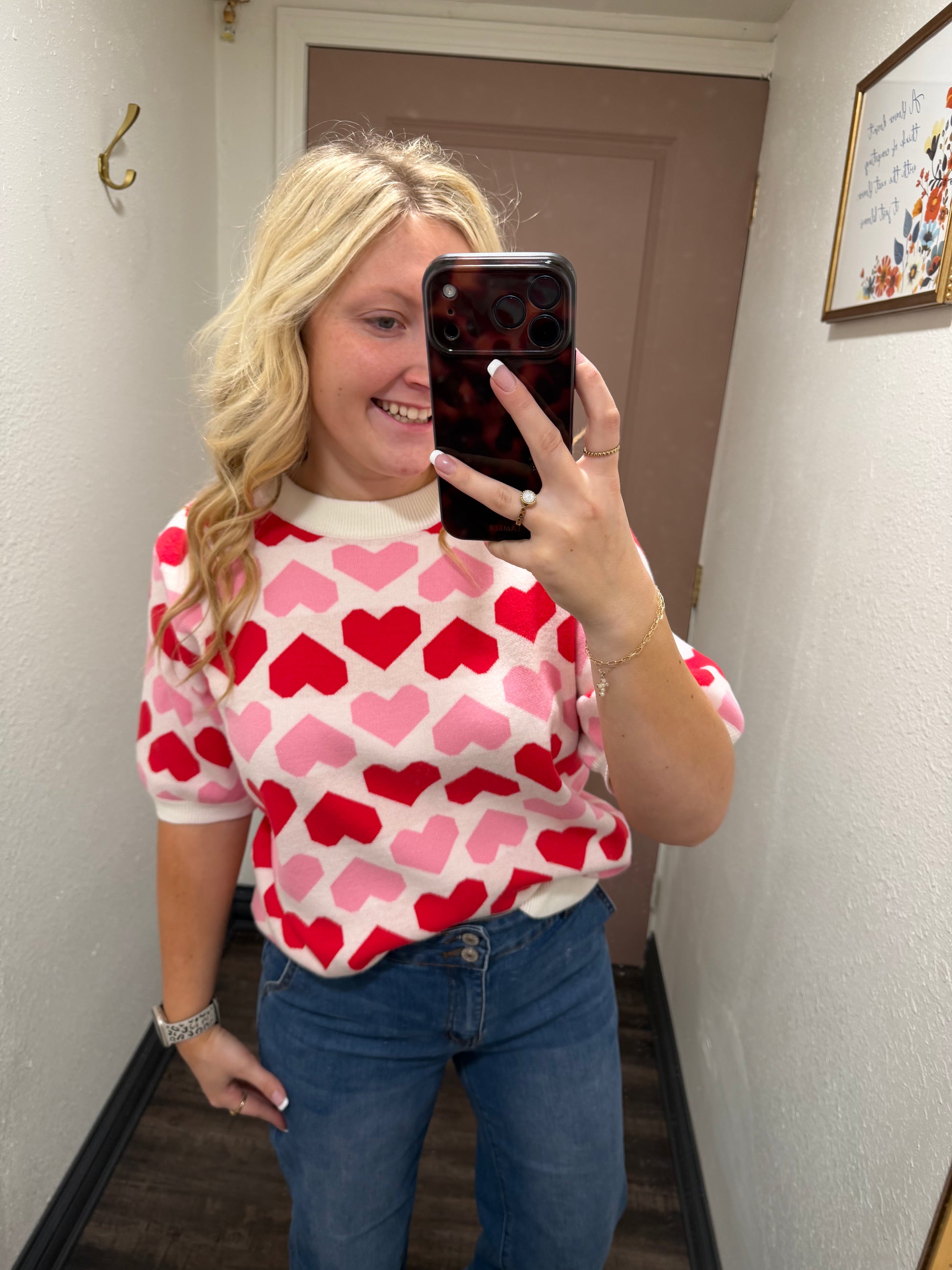 Pink Two Tone Heart Sweater (117)